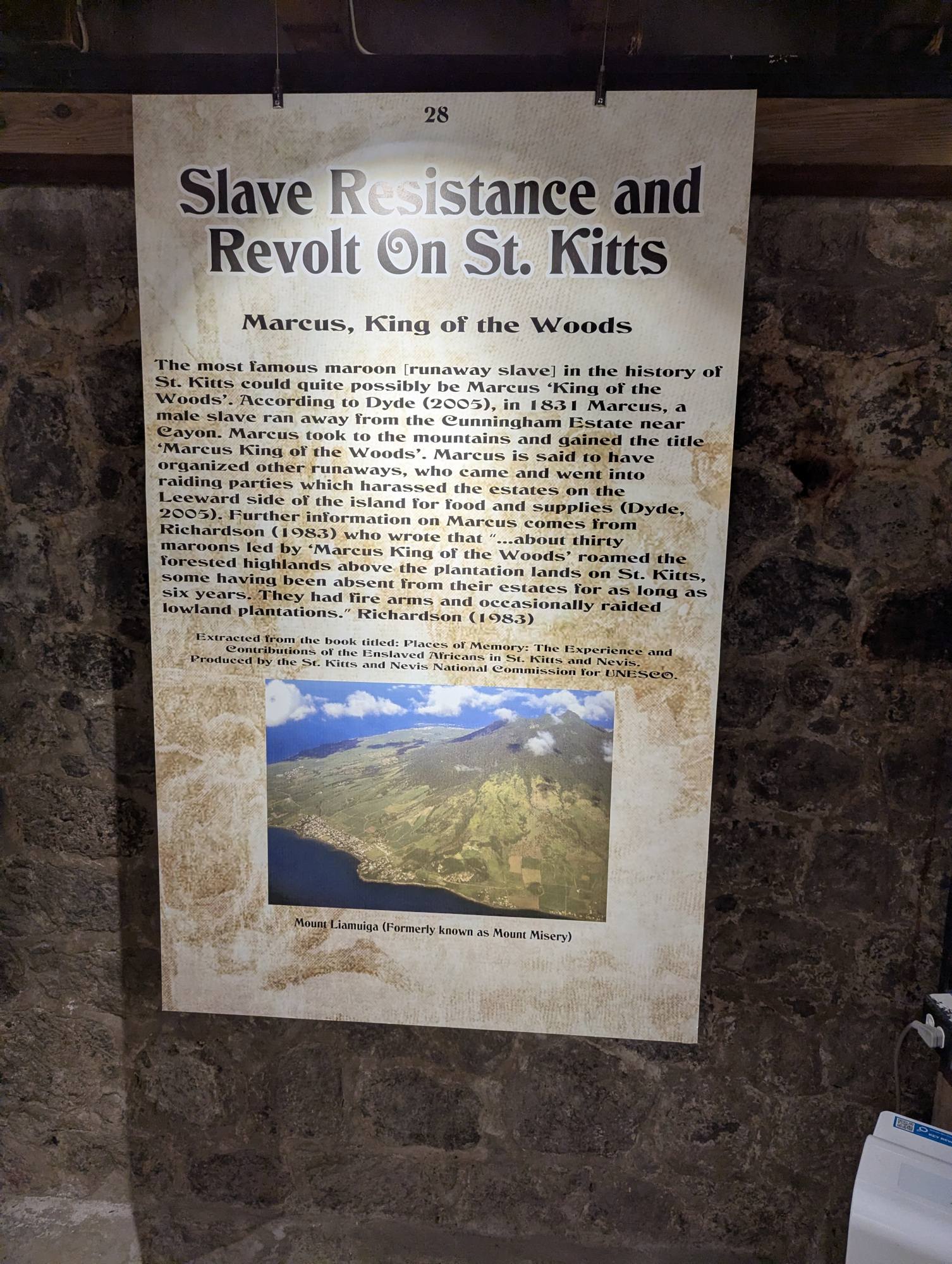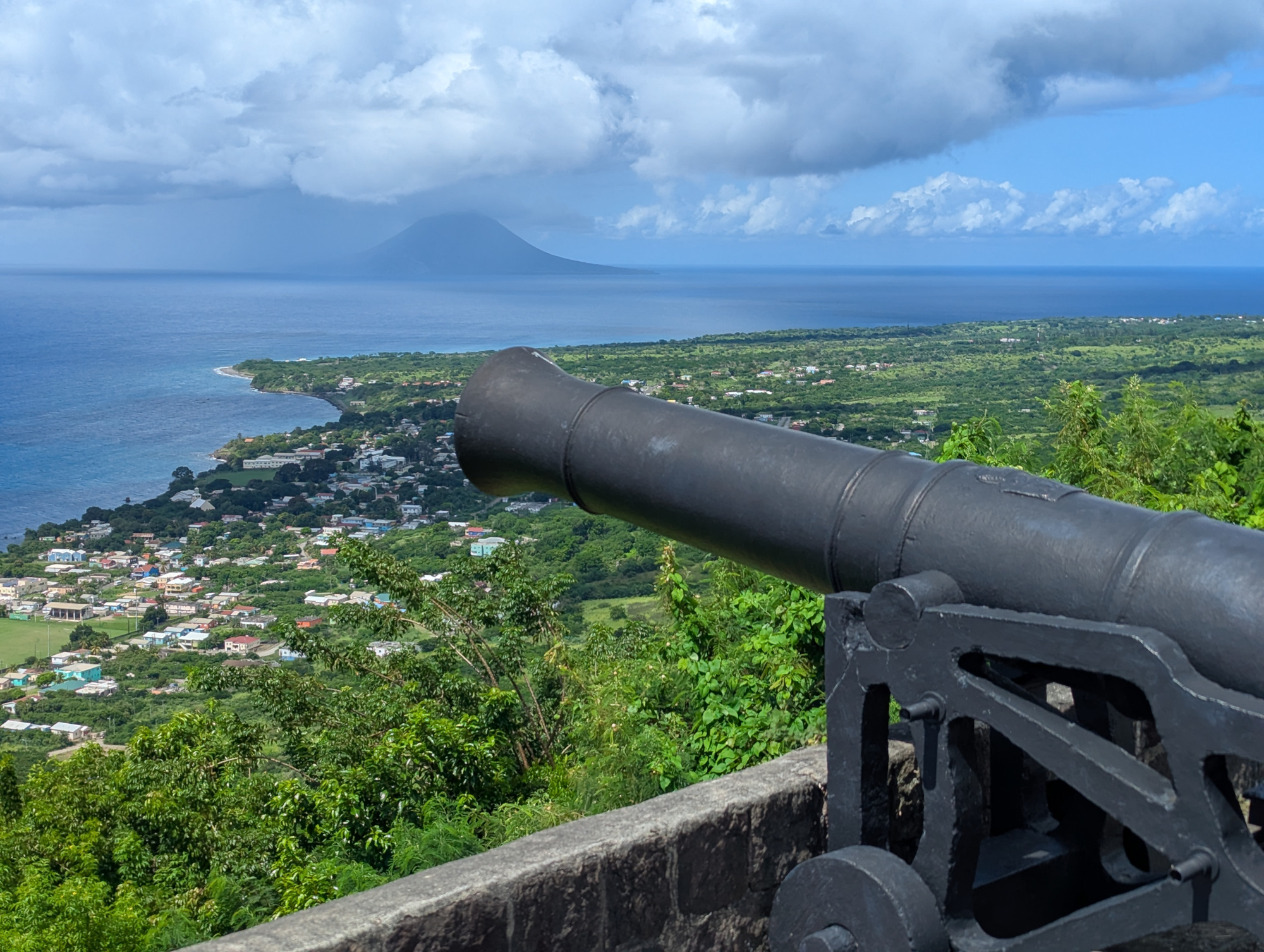Entlang der Karibikküste geht es durch kleine, bunte und sehr saubere Orte. Markant ist der Bloody Point in Challengers Village. So unversöhnlich sich britische und französische Kolonialherren im Kampf um jede kleine Insel gegenüberstanden, hier brachte sie die Angst vor den Ureinwohnern zusammen. Sie töteten an der Stelle über 2000 Kalingo. Ein Wandbild entlang einer Mauer an der Straße erzählt die Geschichte. Auf dem Brimstone Hill liegt das gleichnamige Fort. Es gehört zum UNESCO Weltkulturerbe. Nach einem kurzer Film als Einführung kann man das gut ausgeschilderte und mit Informationstafeln versehene Gelände auf eigene Faust erkunden. Vom höchsten Punkt bietet sich einen faszinieren Ausblick, bei klarer Sicht bis nach Saba. Auf dem Weg zurück „umrunden“ Sie das üppige Grün um den Mt. Liamuga, erleben kleine Orte in einer landwirtschaftlich genutzten Umgebung an der Atlantikküste.